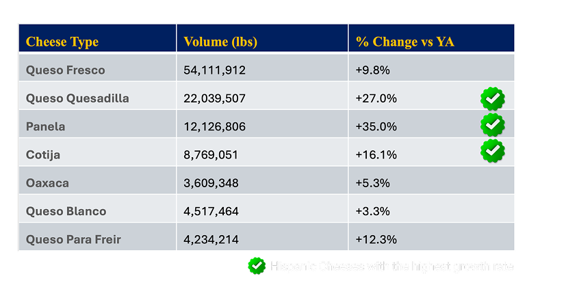 Hispanic cheeses are not only outpacing the overall cheese category but are also rapidly substituting mainstream cheeses in American diets.
